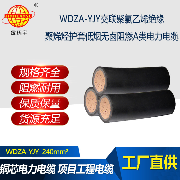WDZA-YJY---低煙無鹵A級阻燃交聯聚乙烯絕緣聚烯烴護套電力電纜。