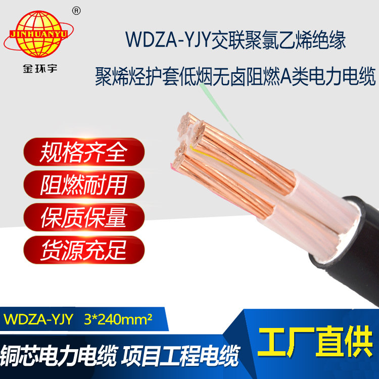 WDZA-YJY---低煙無鹵A級阻燃交聯聚乙烯絕緣聚烯烴護套電力電纜。