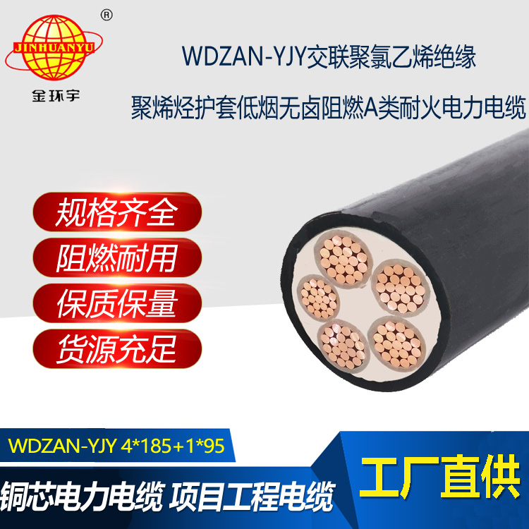 金環宇電纜 低煙無鹵阻燃a級電纜 耐火電纜WDZAN-YJY 4X185+1X95平方