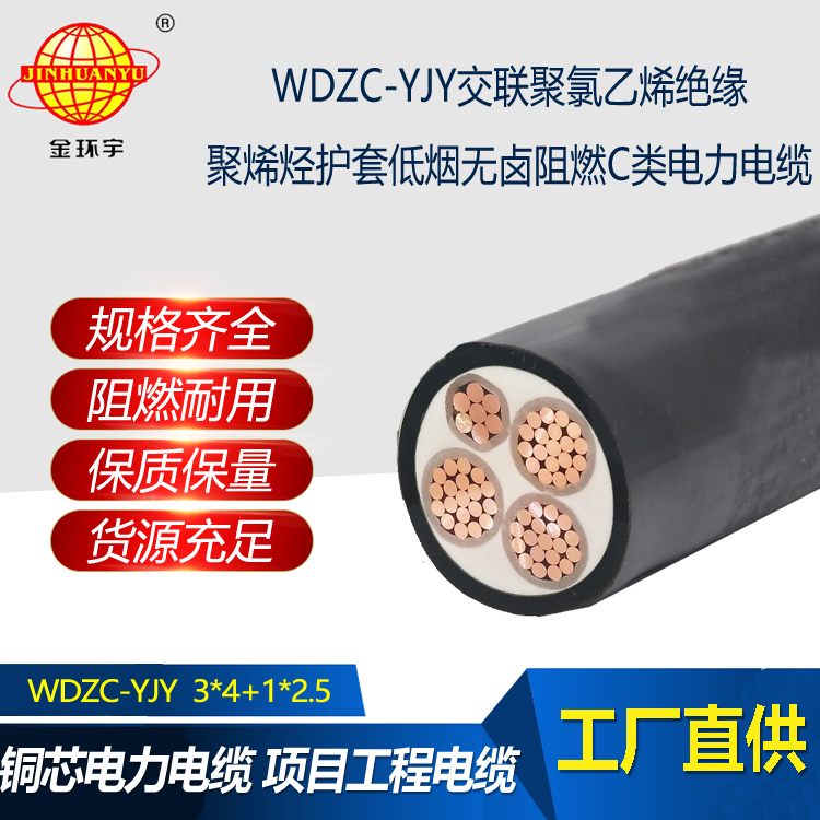 金環宇電線電纜 3+1芯 低煙無鹵阻燃電力電纜 WDZC-YJY3X4+1X2.5平方