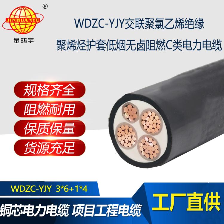 金環(huán)宇電線電纜 3相4線 阻燃低煙無鹵電線電纜WDZC-YJY 3X6+1X4平方