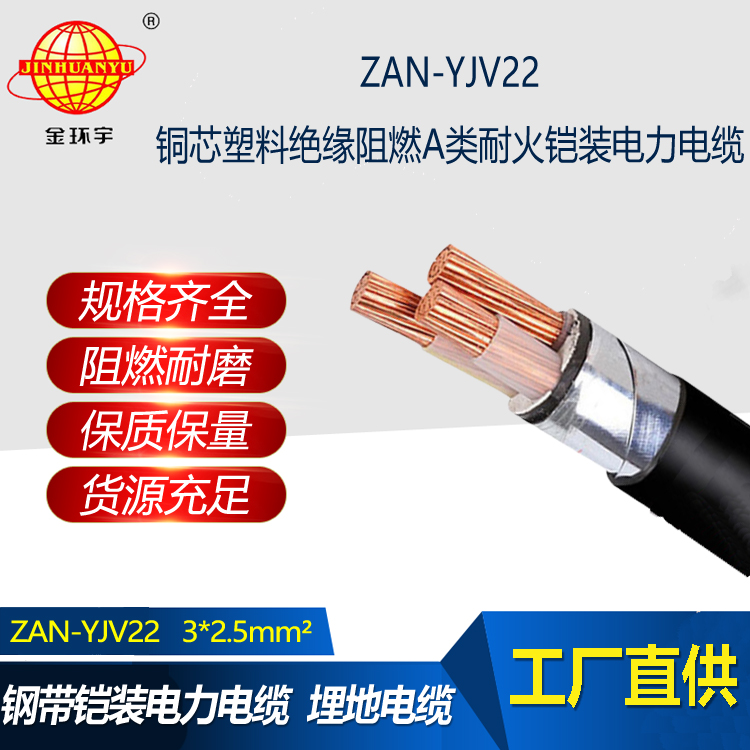 金環宇電線電纜 ZAN-YJV22-3X2.5平方 低壓耐火電纜yjv22阻燃A級電力電纜