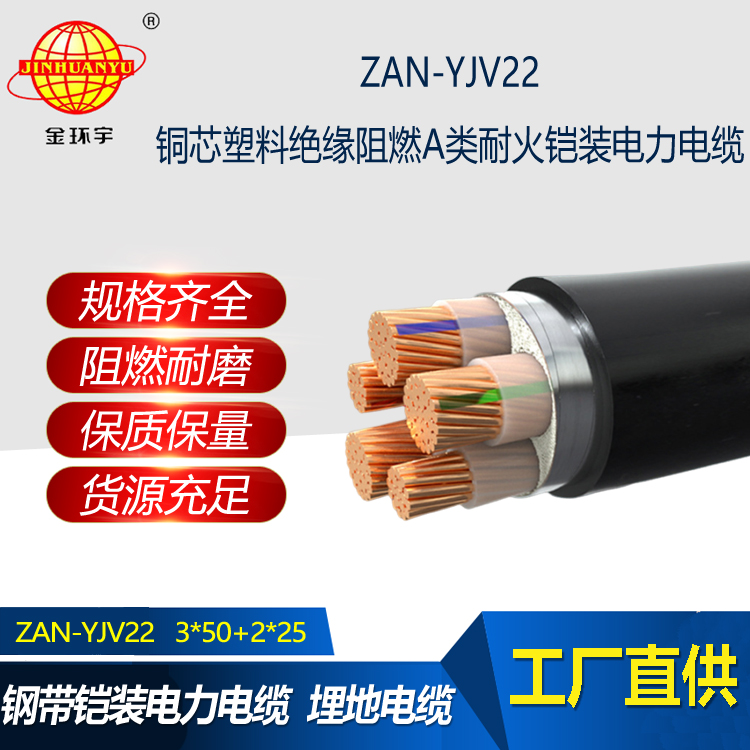 ZAN-YJV22電纜:銅芯交聯聚乙烯絕緣聚氯乙烯護套鋼帶鎧裝A類阻燃耐火型電力電纜,
