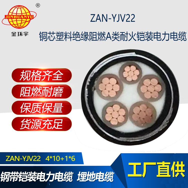 ZAN-YJV22電纜:銅芯交聯聚乙烯絕緣聚氯乙烯護套鋼帶鎧裝A類阻燃耐火型電力電纜,