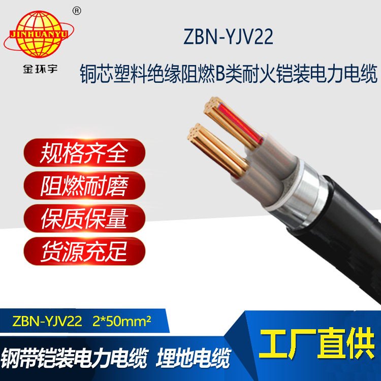 金環宇 深圳yjv22鎧裝電纜 阻燃耐火電纜ZBN-YJV22-2X50平方