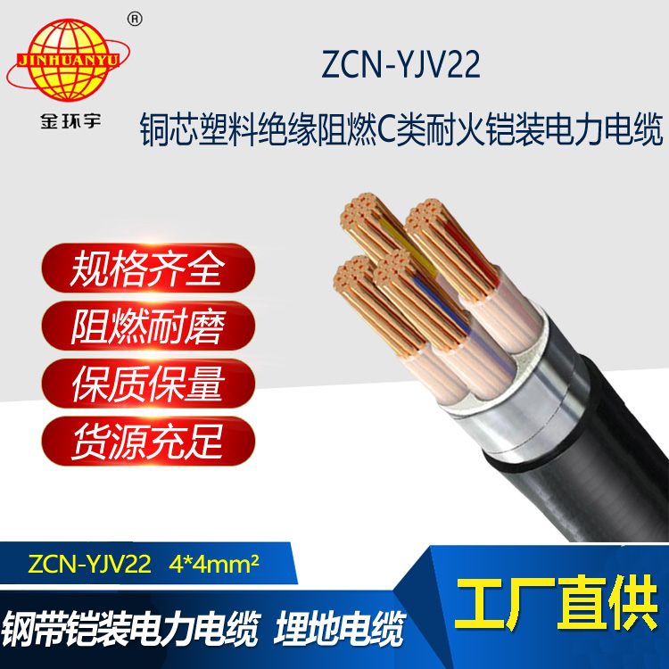 金環宇電線電纜 阻燃耐火鋼帶鎧裝電力電纜ZCN-YJV22-4X4平方 yjv22電纜