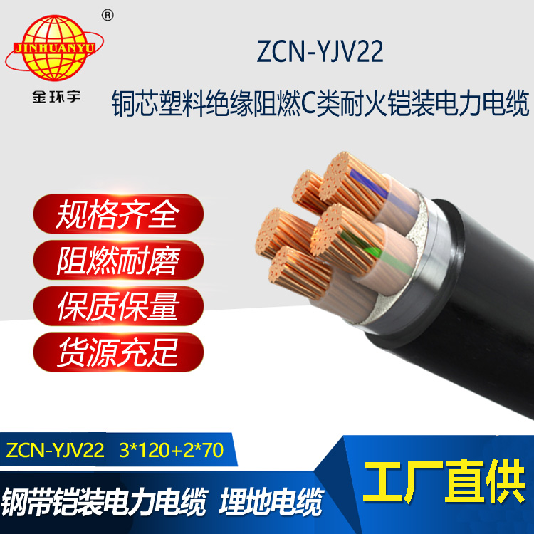 ZCN-YJV22電纜:銅導(dǎo)體C級阻燃耐火交聯(lián)聚乙烯絕緣聚氯乙烯內(nèi)護(hù)層鋼帶鎧裝聚氯乙烯外護(hù)套 力電纜。C級阻燃(ZC)、耐火(N)電力電纜、交聯(lián)聚乙烯絕緣(YJ)、聚氯乙烯護(hù)套(V)、鋼帶鎧裝(22)